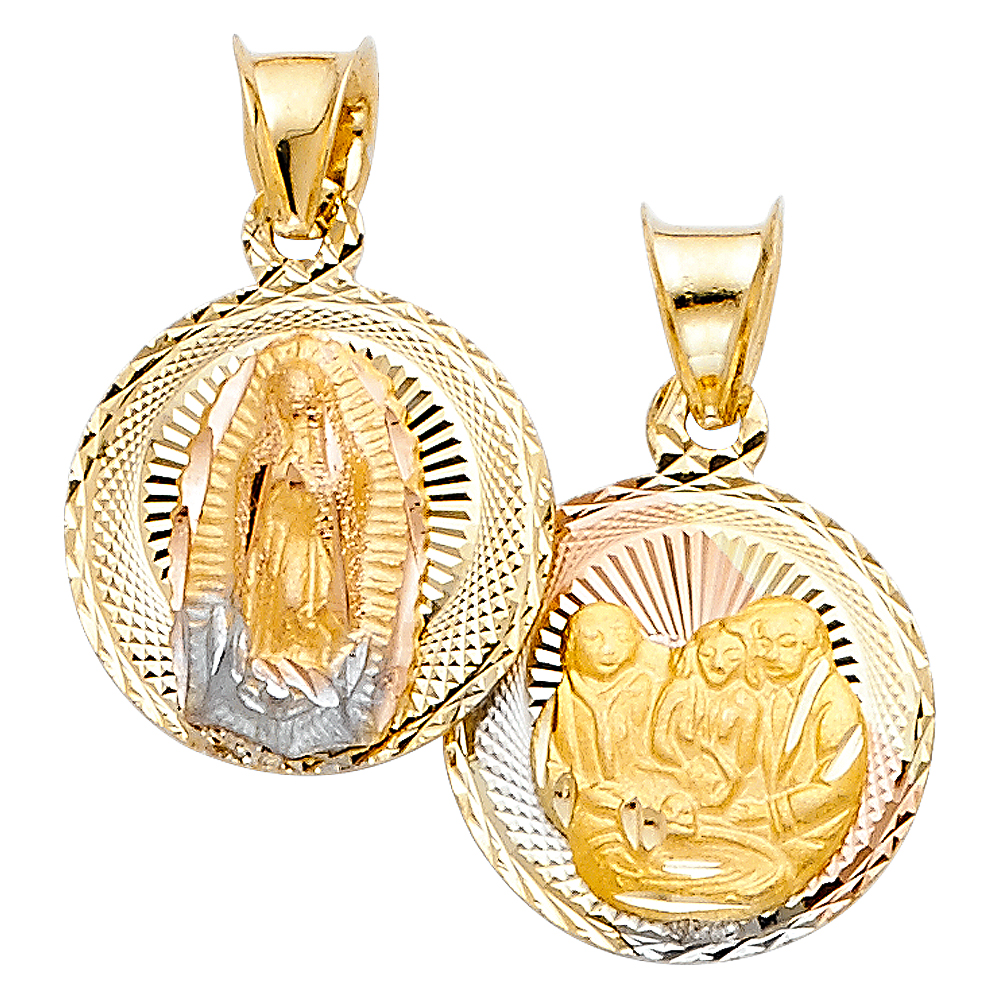 14K 3C Gold 15mm x 12mm Double Face Religious Pendant